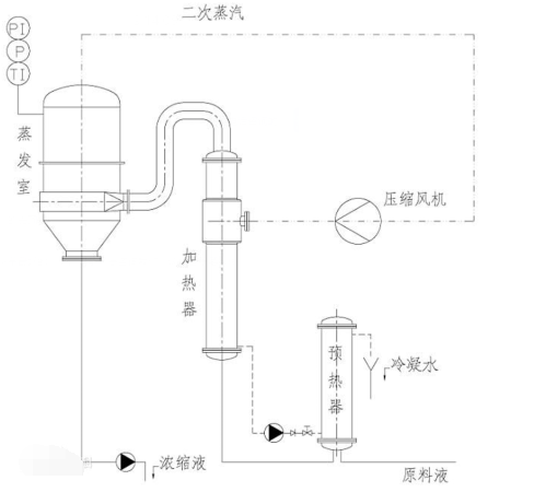 一、mvr蒸發(fā)原理 MVR蒸發(fā)器工作原理是利用高能效蒸汽壓縮機(jī)壓縮蒸發(fā)系統(tǒng)產(chǎn)生的二次蒸汽,提高二次蒸汽的焓,提高熱焓的二次蒸汽進(jìn)入蒸汽系統(tǒng)作為熱源循環(huán)使用,替代絕大部分生蒸汽,從而大幅度降低蒸發(fā)器的生蒸汽消......